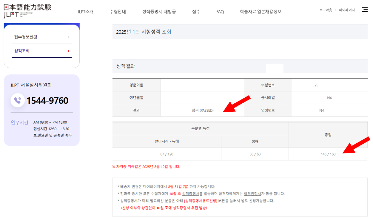 2025년 1회 JLPT 시험을 치셨나요? 그럼 성적증명서를 우편으로 받기 전에, 미리 인터넷으로 성적을 조회할 수 있습니다. 온라인 성적조회는 2025년 8월 25일부터 할 수 있었습니다.